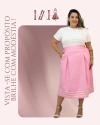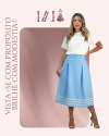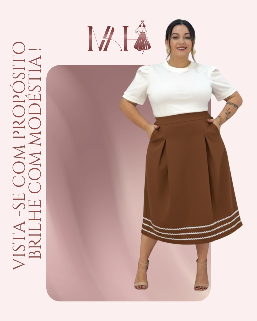 A saia Mirella é uma peça versátil, com cumprimento midi, possui uma modelagem evasê com pregas estruturadas que adicionam volume e movimento elegante garantindo um caimento impecável. Com cintura alta que valoriza a silhueta. O tecido sensorial marrant para dar estrutura e manter o formato das pregas. A barra possui um detalhe charmoso e constratante que adiciona um toque preppy e moderno a peça clássica.