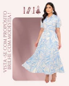 Seu design midi apresenta um delicado detalhe plissado na saia, que confere movimento e charme à peça. O vestido conta com um cinto no mesmo tecido, que acentua a cintura de forma elegante. As mangas curtas proporcionam frescor e estilo, ideais para o clima brasileiro.